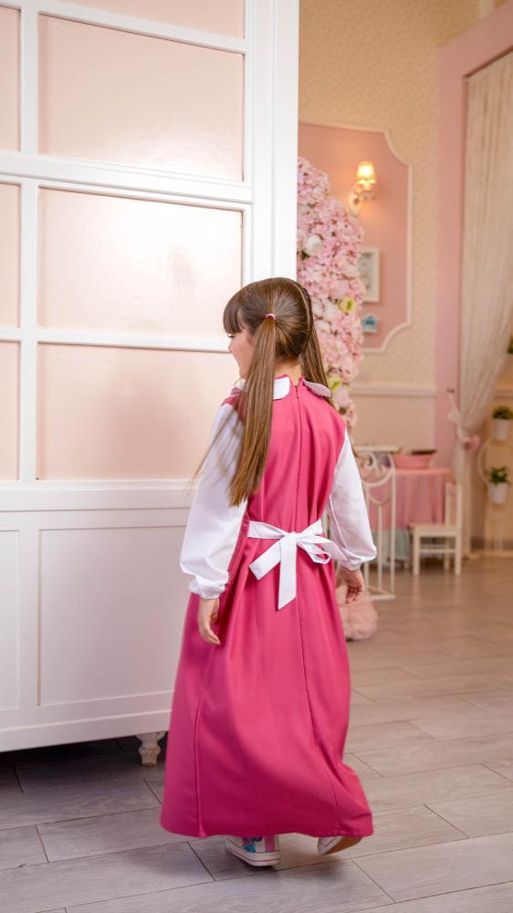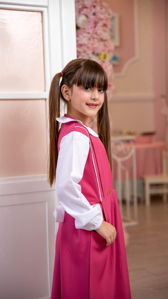 مريول ابتدائي بلون وردي عملي ومريح وبخامة تتحمل اللبس اليومي.